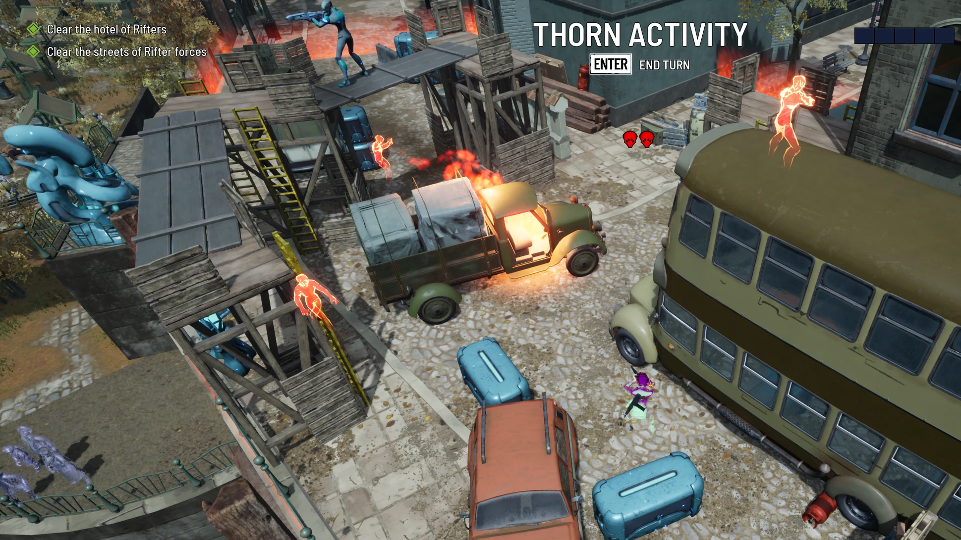- Столкновения с Рифтерами могут принести добычу, но также повышают уровень Накала (Heat), делая каждый следующий бой ещё опаснее.