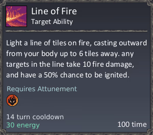 Заклинания вроде «Стены огня» (Line of Fire) и «Воспламенения» (Ignite) поджигают землю, создавая зоны урона, которые можно комбинировать для усиления повреждений.